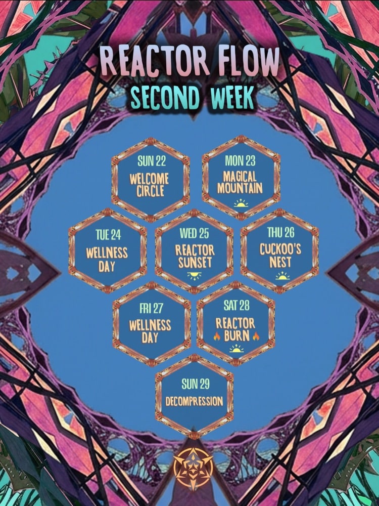 Wellness practitioners will “weave a parallel reality rooted in love, creativity, and authentic expression” in the festival. Week one is focused on embodiment so it is a week to “come back to ourselves, inhabiting the body, grounding, presence, and deep human connection.” While week two is focused on making space meaning “creation, releasing the old, transforming patterns, and opening space for something new to emerge.” Sessions last one to three hours including activities, intellectual workshops, movement sessions, spiritual teaching, art expressions and kids and family.
